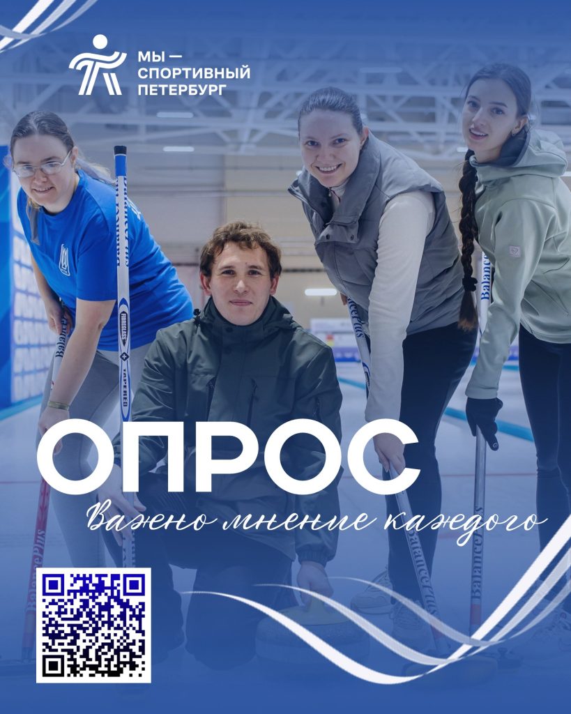 Просим вас принять участие в опросе и оценить условия для занятий физкультурой и спортом в нашем городе. Опрос анонимный, его прохождение займет около трех минут. Для участия в опросе необходимо перейти по ссылке https://isiao.gov.spb.ru/api/public/start-survey/441 или отсканировать QR-код. Для корректного перехода по ссылке необходимо отключить VPN