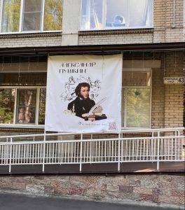 В рамках реализации патриотического проекта мы повесили при входе в учреждение баннер с изображением Александра Сергеевича Пушкина.